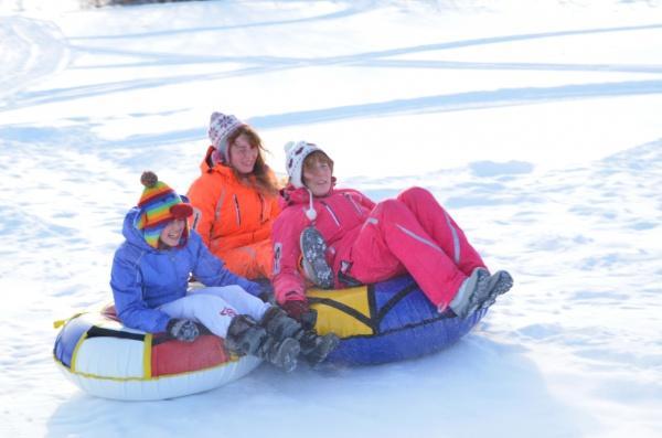 Зимой — большая новогодняя елка, иллюминация, освещенный каток, горки, лыжная трасса, катание на снегоходах.
