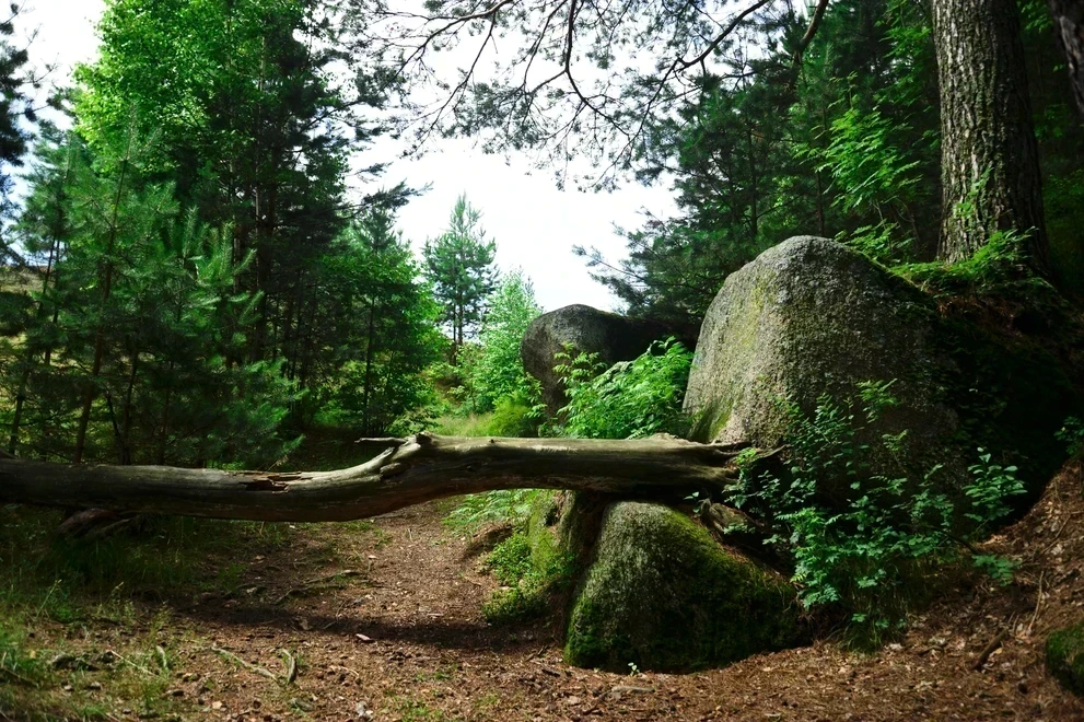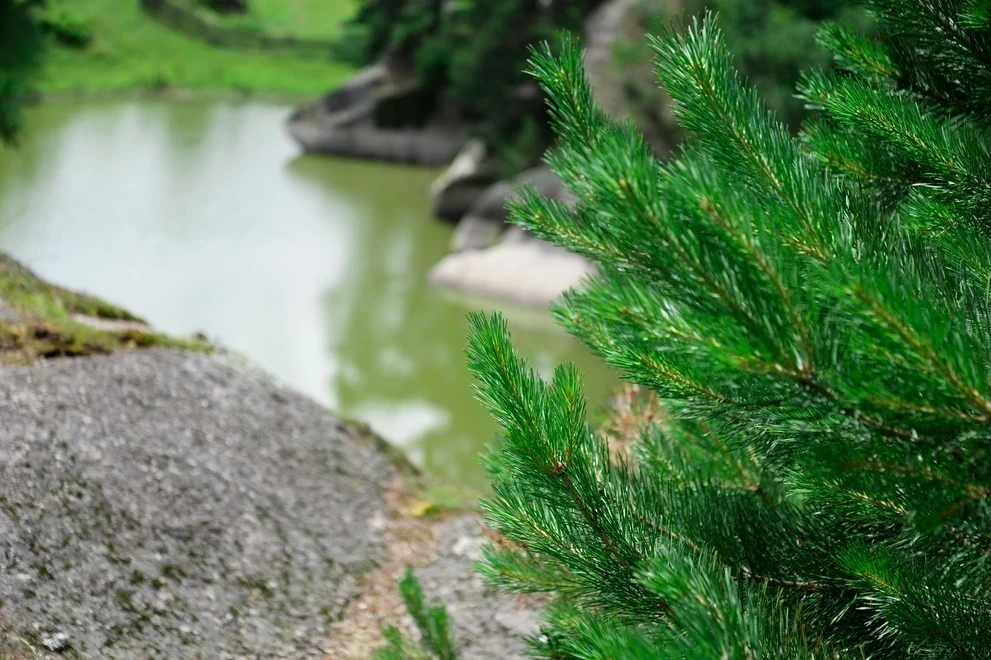 - Сказочный ландшафт. В центре композиции — знаменитая скала «Голова Кита», чьи очертания словно выточены природой в форме морского гиганта. Вокруг — массивные каменные глыбы, поросшие деревьями, и зеркальная гладь озера, меняющая цвет от нежно‑голубого до изумрудного.