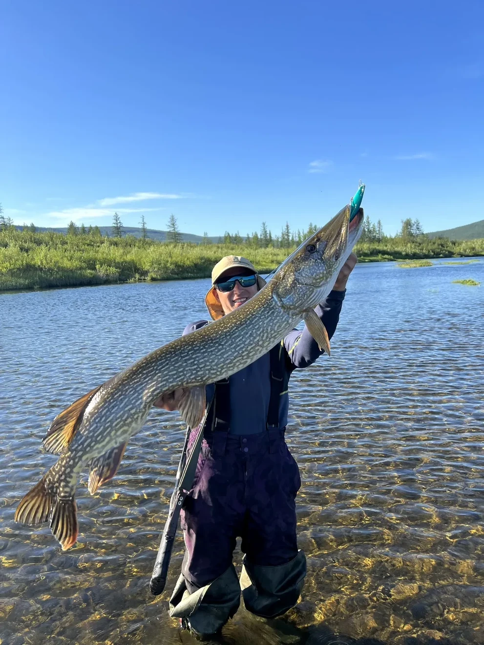 Наша задача на этот день - найти место с крупной щукой, опробовать свои снасти на ней, готовясь к ловле трофейного гольца и тайменя. Местная щука отличается вкусовыми качествами от своих сородичей в других регионах страны. Крупные экземпляры 10+ кг очень частый улов у наших гостей.