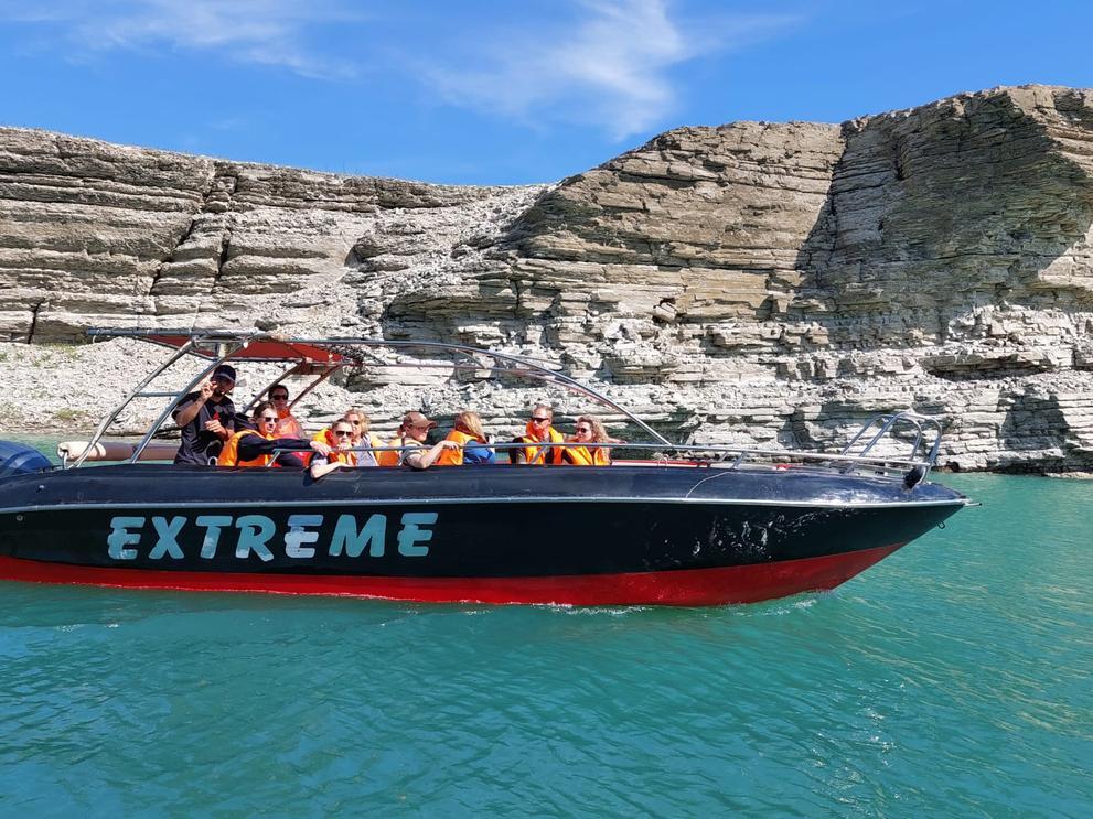 Катание на катере по бирюзовым водам Чиркейского водохранилища зарядит нас положительными эмоциями, которыми мы будем делиться по пути в гостиницу.