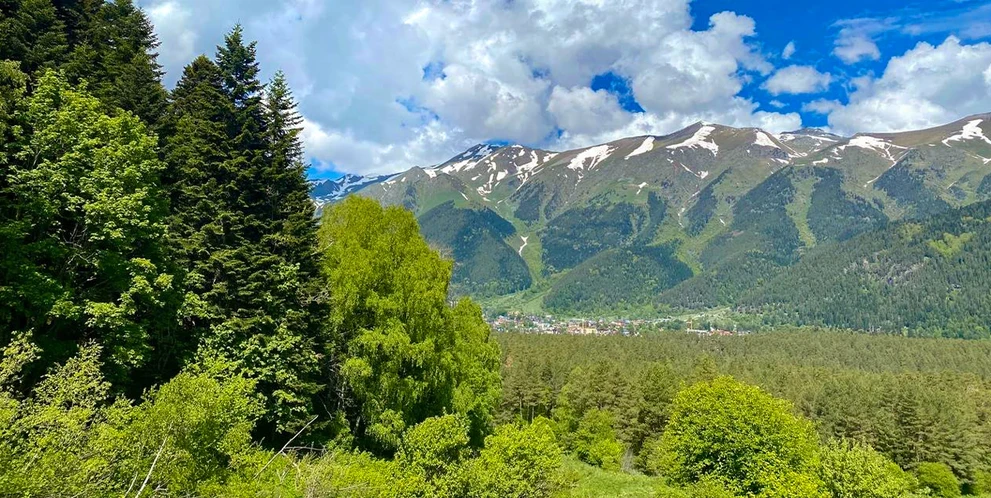 Чем выше поднимаемся в горы, тем сильнее будет виден интереснейший переход природы из зимы в лето. На ваших глазах ковер из зеленой травы будет плавно переходить в снег на склонах гор.