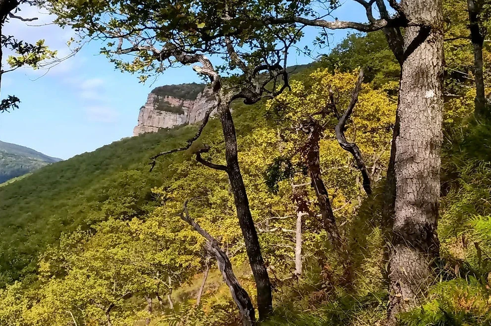 Путь на Орлиную полку идет по лиственному лесу, с умеренным набором высоты. Потребуется час-полтора усилий – и мы на месте! Эти скалы называются орлиными, поскольку чуть выше гнездятся семьи бородачей и сипов. Наши туристы по-простому называют их орлами! Причем, птиц можно наблюдать здесь практически в любое время.