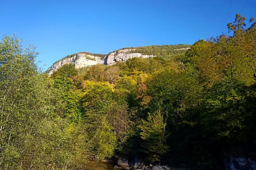 Курджипское ущелье – это кладезь достопримечательностей! Поэтому именно с него начнем тур в Мезмае. Весь путь сегодня пройдет по каменистой тропе вдоль реки Курджипс. В самом начале ущелья родник, а затем - огромная речная заводь «Шестиметровка». Недалеко от этого места иногда стоит горный лагерь туристов.
