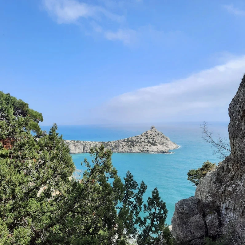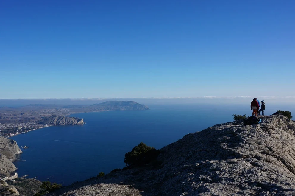 Стоя на мысе Капчик, мы видим две бухты: Синюю и Голубую. Чтобы увидеть третью, Зеленую бухту Крыма, нам предстоит совершить треккинг вдоль горы Орёл.