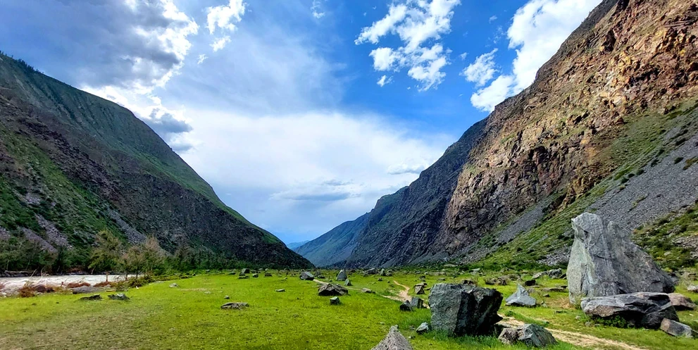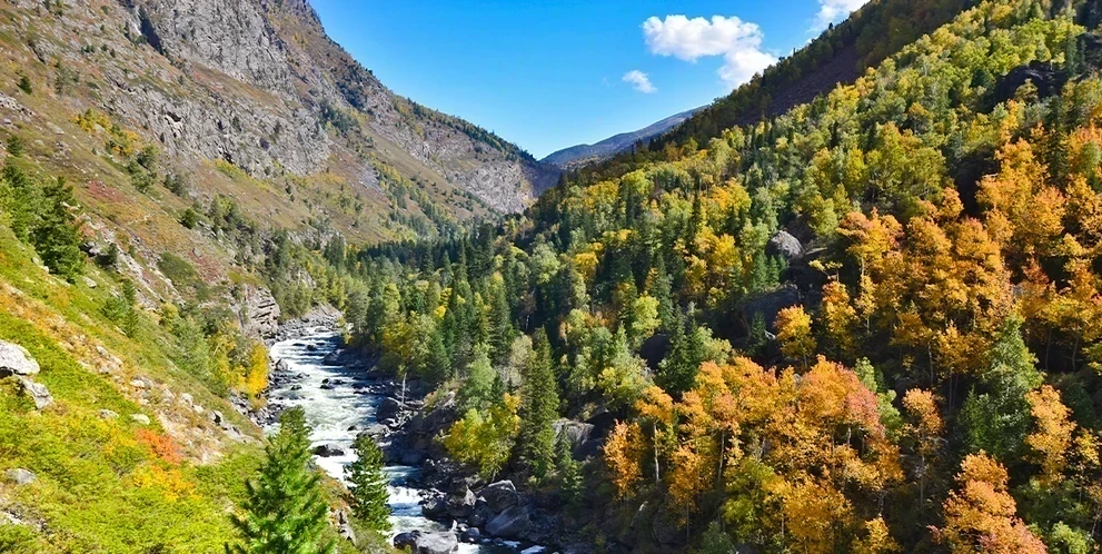 - высокие горы с глубокими ущельями на границе с Казахстаном. Здесь проходят наши классические треккинговые маршруты на Актру, Мульту и к горе Белуха.