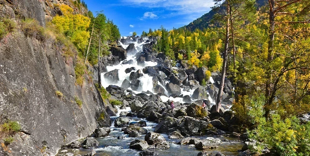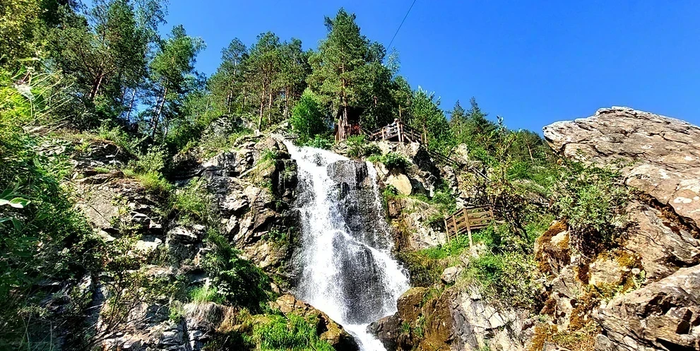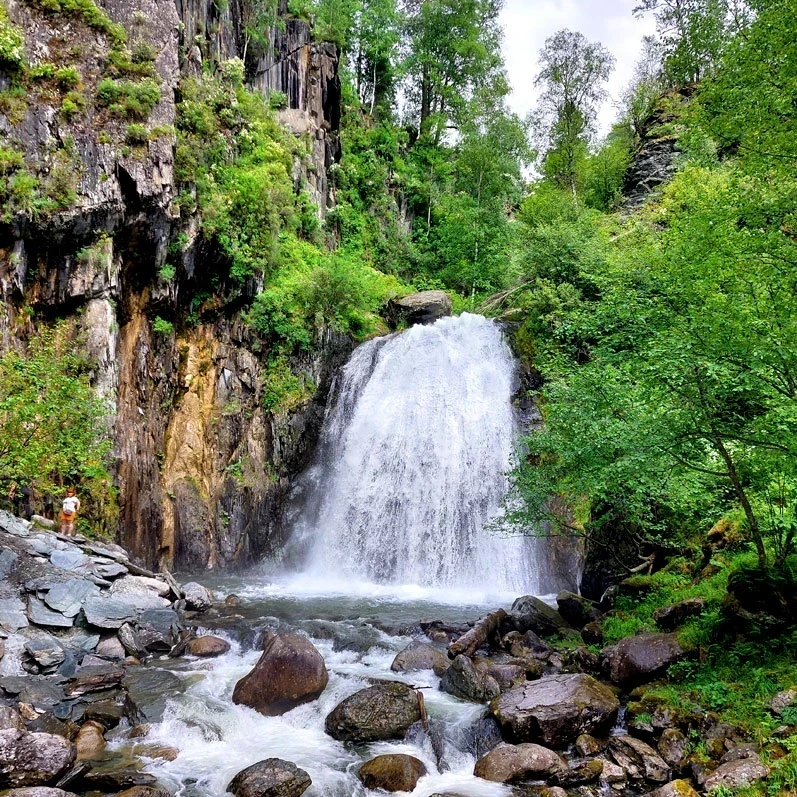 Именно ради этого водопада многие туристы едут на Алтай)) Это самый большой каскадный водопад Алтая, его высоты 160 м!
