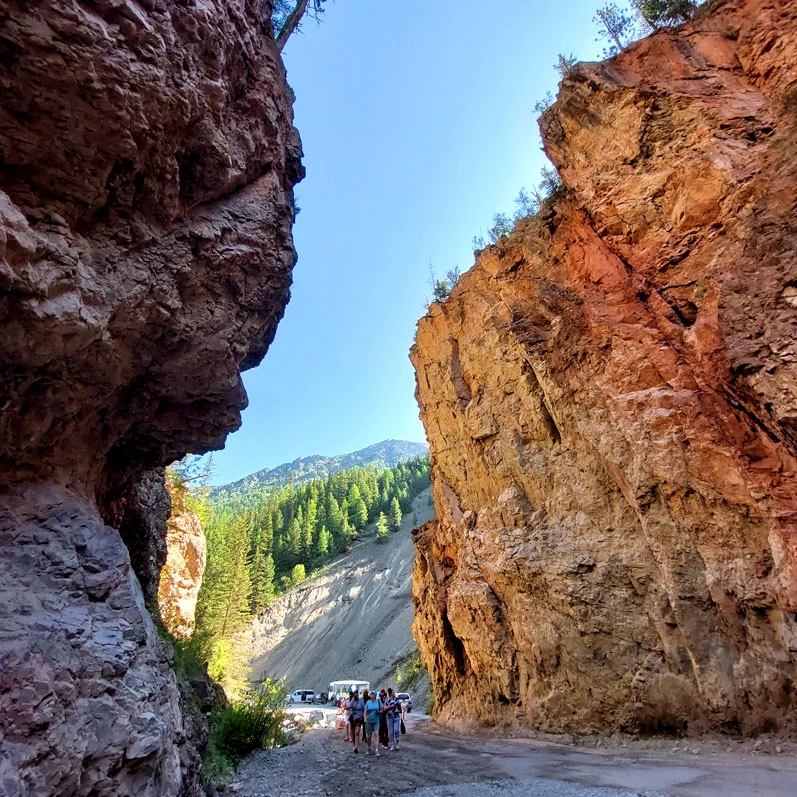 Первым делом увидим Красные ворота – огромный проход между отвесными скалами. Горная порода содержит киноварь, которая придает скалам рыже-красный оттенок.