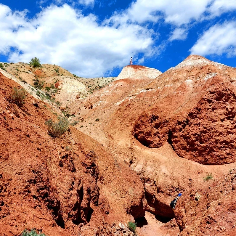 Погуляв в лесу, дальше отправляемся в пустыню! Пейзаж тут же кардинально изменится и мы окажемся в локации Кызыл-Чин. Здесь пустынное плато, вокруг которого на радость туристами выросли разноцветные горы. Горы тут же удивляют своими оттенками: они желтые, красные, оранжевые. Мы с вами посетим местность, которая называется Марс-1 и сделаем десятки необычных снимков!