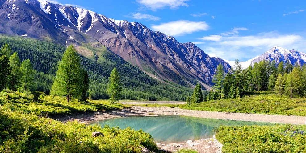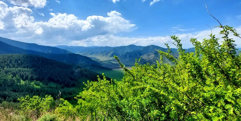 - зеленая, лесная, более лайтовая часть Алтая)). Здесь всегда теплее, чем в высоких горах. В этой части находится Телецкое озеро – самое огромное на Алтае, а также десятки достопримечательностей, к которым очень легко добраться. Треккинги здесь не очень длинные, с небольшими перепадами высот (от 100 до 300 м в день). На этой территории Алтая и проходит наш тур!.