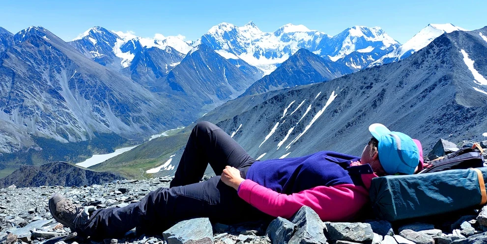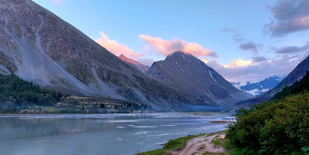 Один из бонусов перевала - это волшебный вид на Белуху. Именно с этой точки гора предстает в невероятном ракурсе!