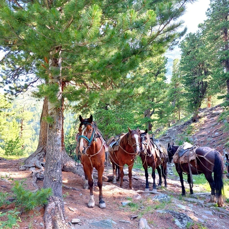 Сегодня мы впервые увидим алтайских лошадок, которые будут помогать переносить наши личные вещи и общественные продукты. Грузим наши рюкзаки на лошадок, с собой берем только вещи, которые будут необходимы сегодня днем, во время радиалки.