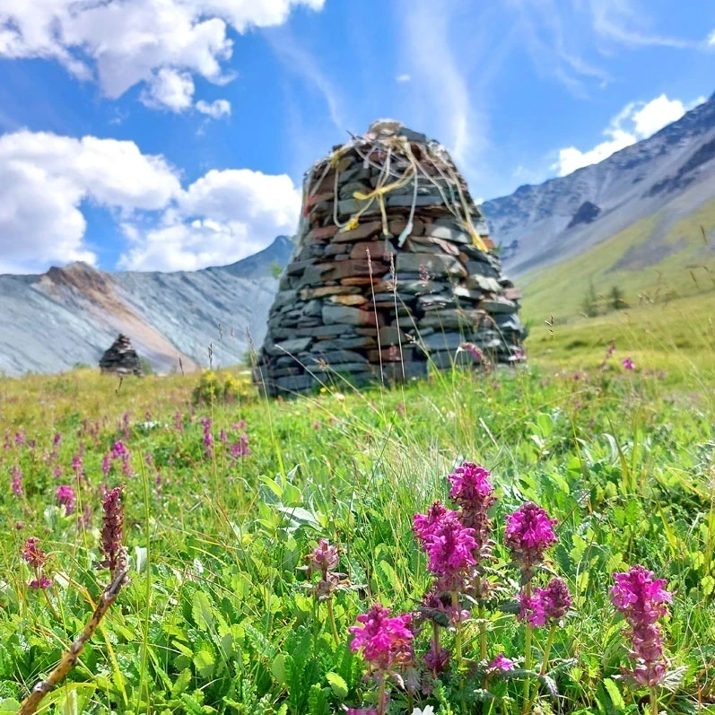 Знаменитый художник Николай Рерих отдыхал в этих местах, рисовал свои картины и, как и мы с вами, отправлялся на треккинги по прекрасным долинам Алтая. Особенно его сердцу запала долина реки Ярлу, именно здесь он почувствовал огромное место силы.