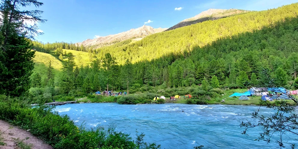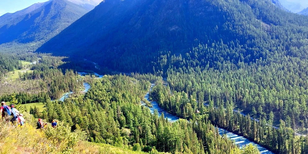 Активная часть похода на Алтай: 23 км пешком, перепад высот 2040-990 м, продолжительность 8-9 часов.