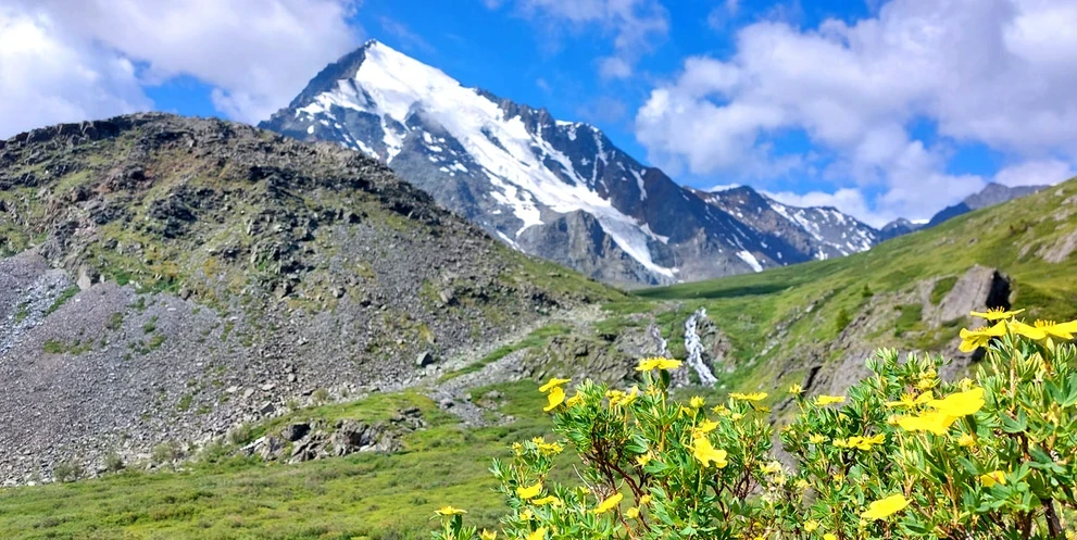 Кроме того, это еще и просто невероятно красивая гора, которую ледяным покрывалом укутываем Аккемский ледник!