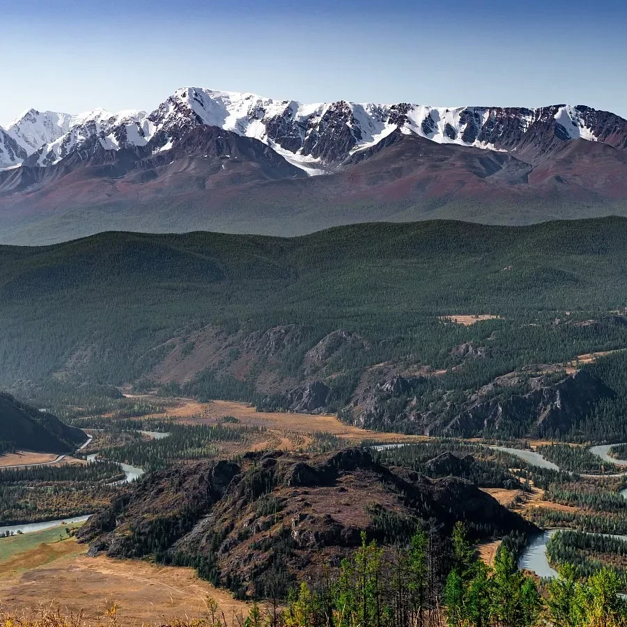 По пути к этому красивому месту сделаем остановку, чтобы полюбоваться белоснежным Северо-Чуйским хребтом. Северо Чуйский хребет - это один из самых высоких горных массивов на Алтае. Он является частью Алтайских гор. Хребет имеет длину около 100 километров и достигает высоты до 4000 метров над уровнем моря. Его величественные вершины, покрытые ледниками, создают потрясающий контраст с яркими цветами низменностей. А фото, сделанные на фоне такого великолепия, дополнят ваш фотоальбом. Это очень крутое место для фотосессии!