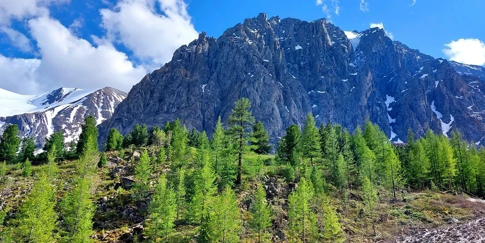 Пораньше выходим из лагеря на треккинг. Тропинка уверенно поведет нас по кедровому лесу, местами будут открываться потрясающие виды, только и успевай доставать телефон для фото)))) Выйдя из зоны леса, пойдем вдоль шумной реки, а впереди уже будут заманчиво просматриваться ледники.