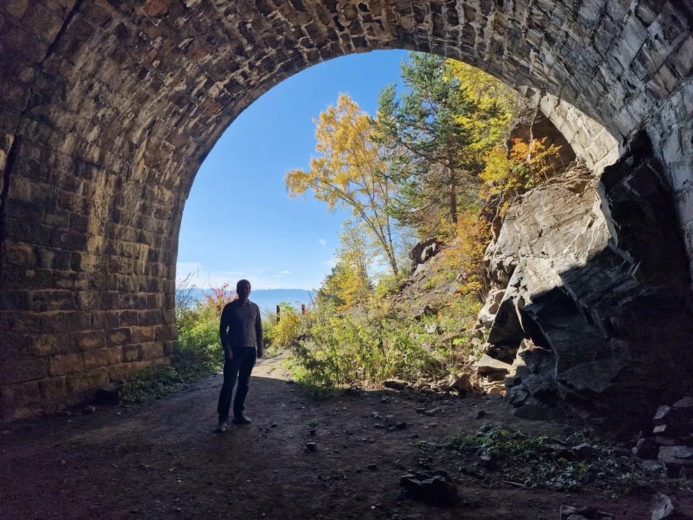 Далее, посещаем экскурсионный маршрут КБЖД на катере. Маршрут во время экскурсии вдоль КБЖД проходит вдоль береговой линии Листвянки, мимо истока Ангары, мимо пос. Порт-Байкал, в котором находится кладбище кораблей. Остановка около мыса Толстый, осмотр тоннелей. Остановка на ст. Половинная, осмотр локомотива паровоза (статуя), моста через реку Половинная, самого длинного тоннеля КБЖД через м. Половинный (777-778 м.). Экскурсия историческая. В программе предусмотрен обед.
