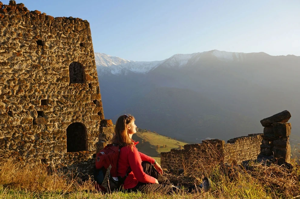 Треккинг в Ингушетии приведет нас к знаменитому башенному комплексу Эрзи. Средневековую крепость недавно отреставрировали, но при этом сохранив её аутентичный облик.