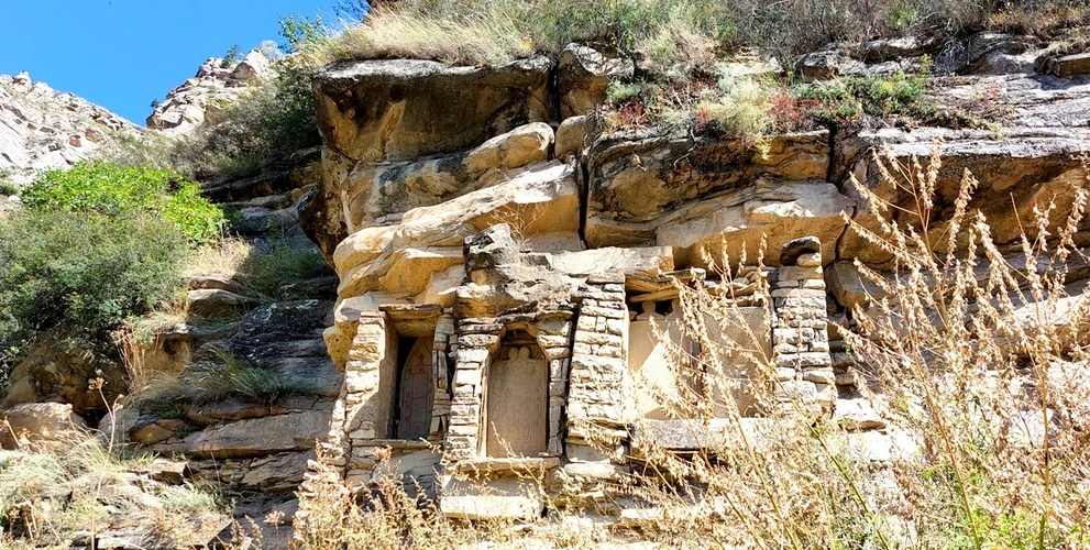 Сам Датунский храм находится в конце ущелья, также в окружении гор Дагестана. Можно зайти внутрь и сделать красивые фото через окошки храма!