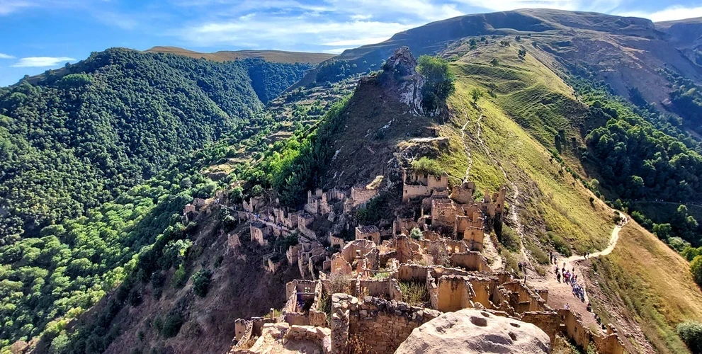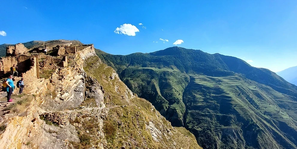 Следующая остановка – легендарный аул Гамсутль, который часто называют дагестанским Мачу-Пикчу. Мимо родника с вкуснейшей водой совершим пеший треккинг и поднимемся в аул-призрак. На аварском языке «гамсутль» переводится как «у подножья ханской крепости». Здесь полуразрушенные дома, не лишенные эстетических элементов, стоят на обрыве, любой строитель сказал бы, что здесь построить дом не реально, но дома были построены и стоят! И стояли бы, не разрушаясь далее, если бы люди не покинули это место. Последний житель этого аула Абдулжалил Абдулжалилов до конца жизни не терял надежду возродить его! Он в одиночестве прожил 9 лет в ауле, лишь раз в месяц спускаясь в аул Чох, чтобы посетить библиотеку.