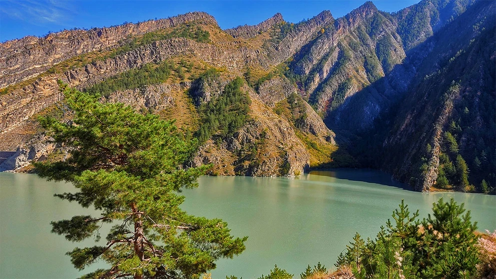 Водохранилище на реке Аварское Койсу расположилось среди скал, на которых растут небольшие сосны и пихты. Вода здесь насыщенного, бирюзового цвета, фото получаются очень эффектные!
