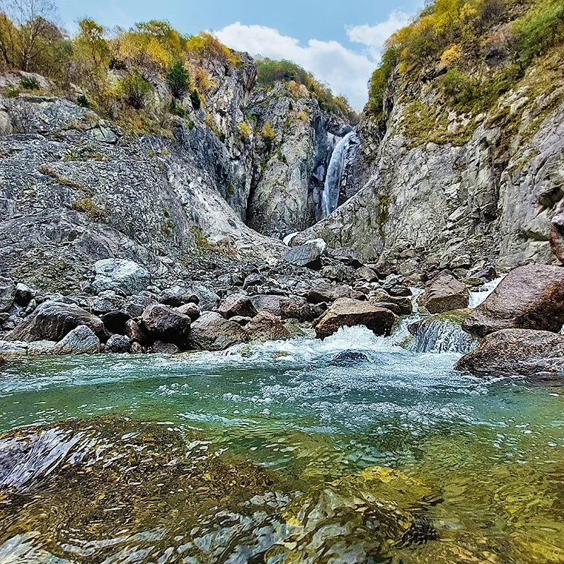 Затем поедем к водопаду Зеркли Суу. Лесная тропа ведет к этой локации и приводит в ущелье, в глубине которого находится водопад.