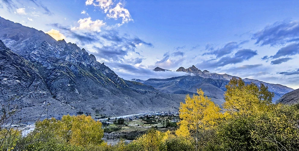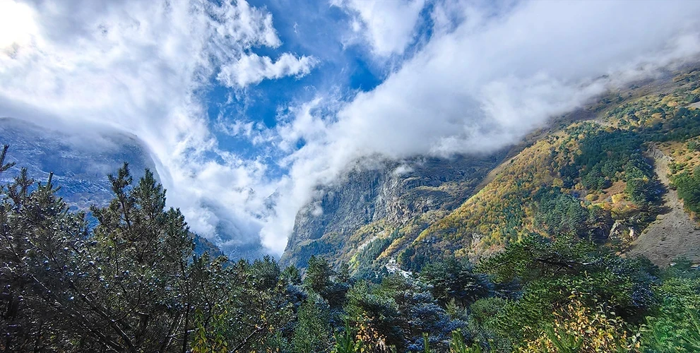 Ущелье не простое, оно с сюрпризом! В конце пути вас ожидает очень красивая горная гряда, украшенная ледниками. Но порой после обеда спускается туман и словно занавесом закрывает от наших глаз ледники. Поэтому загадывайте, чтобы всю эту красоту увидеть!
