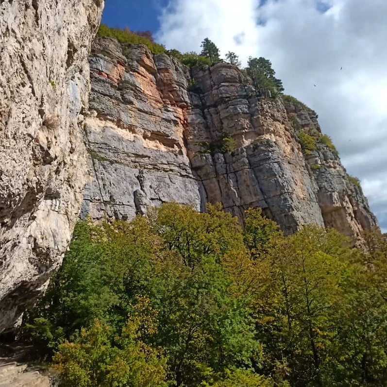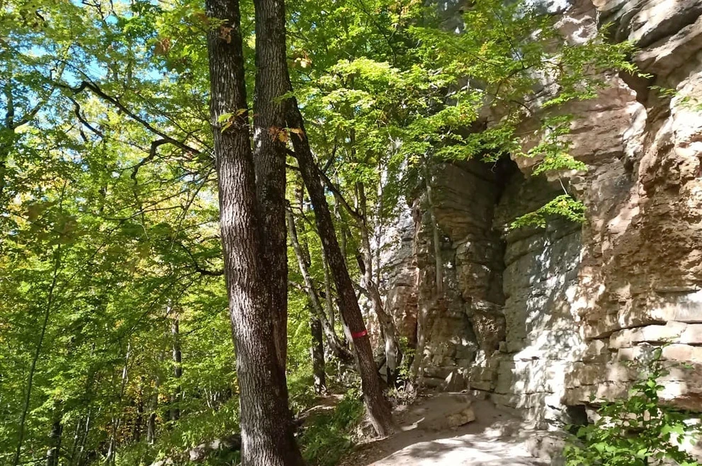 Путь на Орлиную полку идет по лиственному лесу, с умеренным набором высоты. Потребуется час-полтора усилий – и мы на месте! Эти скалы называются орлиными, поскольку чуть выше гнездятся семьи бородачей и сипов. Наши туристы по-простому называют их орлами! Причем, птиц можно наблюдать здесь практически в любое время.
