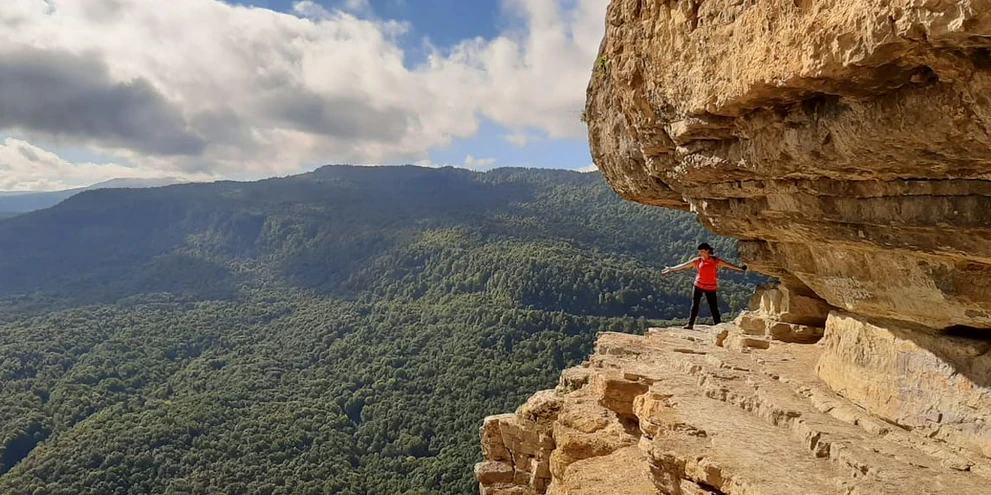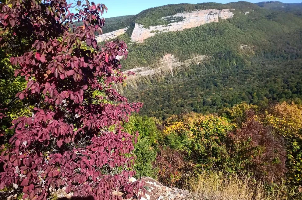 С северной стороны долину Мезмай украшают величественные скалы, которые видны практически из любой части поселка. По маршруту у нас будет сразу несколько интересных мест: обзорные площадки «Сосна», «Пирамида» и самая знаменитая достопримечательность - «Орлиная полка».